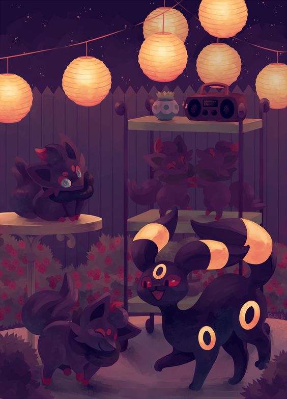 "Амбреон - Покемон-Лунный Свет.Лунный свет изменил генетическую структуру Иви. Умбреон прячется в темноте в поисках добычи."